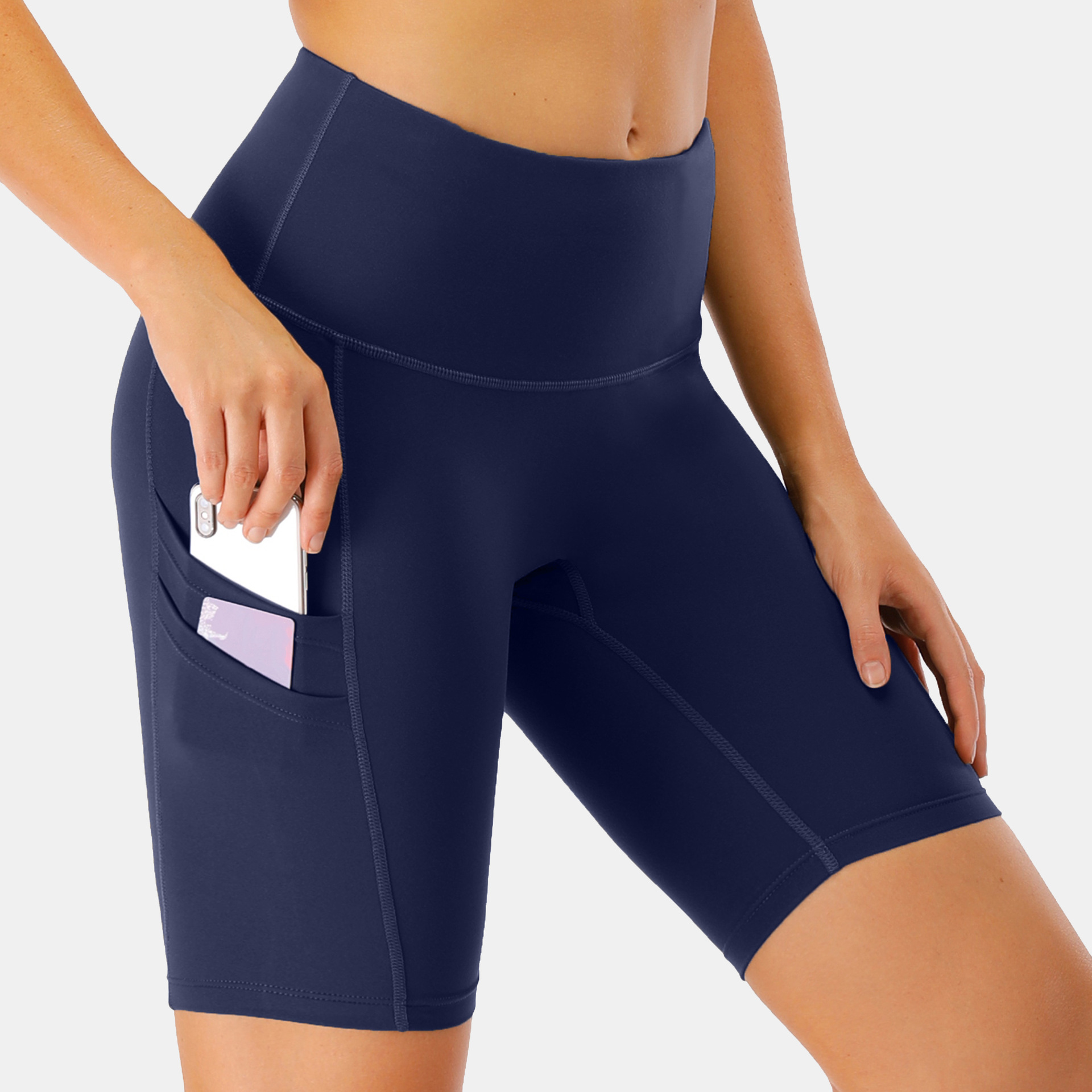 KH015women Yoga bike Shorts with 3 Side phone Pocket High Waist Squatproof Gym Fitness Running training Shorts